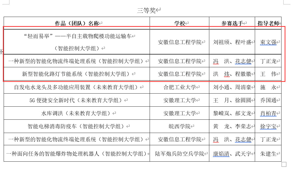 5月9日,由安徽省科协主办,安徽省科技馆承办的第七届全国青年科普创新实验暨作品大赛安徽赛区复赛圆满落下帷幕。其中,我校机械工程学院王同轩团队的作品《“收纳助手”——智能叠衣收纳装置》、机械工程学院西成张团队的作品《一种新型行星齿轮搓背装置》获得安徽省二等奖,机械工程学院冯洪团队的作品《一种新型的智能化物流终端处理系统》、电气与电子工程学院刘祖颀团队的作品《“轻而易举”——半自主载物爬楼功能运输车》、电气与电子工程学院洪炜团队的作品《新型智能化路灯节能系统》获得安徽省三等奖。