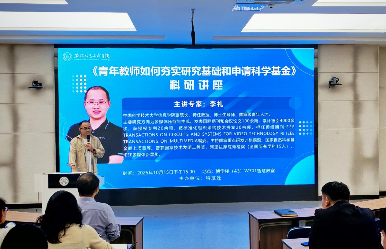 本网讯 为加强青年教师队伍建设,提升科学基金申报能力,10月15日下午,由科技处主办的“青年教师如何夯实研究基础和申请科学基金”专题讲座在A3W301教室成功举行。讲座特邀中国科学技术大学信息科学技术学院副院长李礼教授主讲,由科技处副处长王伟主持。各二级学院科研负责人、骨干教师及科技处全体人员参加了活动。