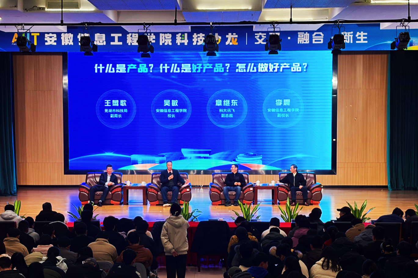 本网讯 为搭建学术交流平台,凝聚创新共识,提升服务区域社会经济发展的能力,12月24日,学校隆重启动科技沙龙系列活动。首期沙龙邀请科大讯飞副总裁章继东围绕“什么是产品?什么是好产品?怎么做好产品?”做深度交流分享。芜湖市科技局副局长王莺歌到场指导,校长吴敏、副校长李震出席活动。活动现场,各学院负责人和300余名教职工代表共同见证学校又一创新交流平台启动,共同聆听前沿科技产业智慧。