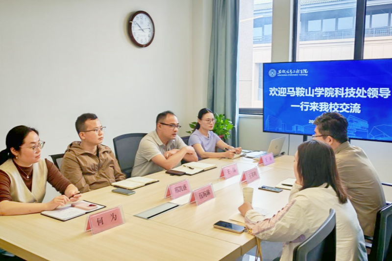 本网讯 10月13日上午,马鞍山学院科技处处长王英明、专员伍琬琳来访我校,科技处副处长王伟及相关人员热情接待并座谈。座谈中,王伟介绍我校近年科研工作,双方围绕科研项目、科研创新平台、科研团队、知识产权管理等方面,交流了各自在管理实践中遇到的挑战与对策,并就相关经验进行了深入探讨。。此次交流为两校搭建沟通桥梁,强化科研管理领域合作,为后续工作提供参考。(座谈会现场)