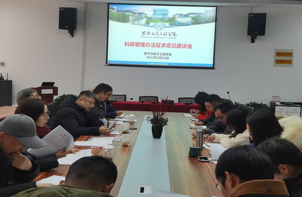 本网讯 为进一步完善科研管理制度,切实提升科研管理水平,2月20日,电气与电子工程学院在博识楼A4S403召开科研工作管理工作研讨会。副校长王彬、科技处处长高涛出席会议,学院全体院领导及教师代表参加研讨,会议由执行院长章敏凤主持。 (王彬讲话) (章敏凤主持)与会教师代表结合科研工作过程中遇到的问题和自身成长路上的感悟,针对《安徽信息工程学院横向科研项目及经费管理办法》、《安徽信息工程学院科技创新平台建设与管理办法》、《安徽信息工程学院科研团队建设方案》、《安徽信息工程学院青年科研基金暂行管理办法》(征求意见稿),提出了一系列意见和建议。研讨过程中,高涛和与会教师进行了热切的讨论交流。 (研讨会现场) (高涛讲话)研讨会结束后,王彬高度赞扬了电气学院近年来科技工作取得的成果,同时表达了对电气学院未来科技工作更高的期望,希望学院进一步明确科研工作的指导思想,不断增强创新活力,不断提升科研质量和水平,充分发挥科研在教学改革和学校发展中的基础性、先导性作用,努力开创我校科研工作新局面。